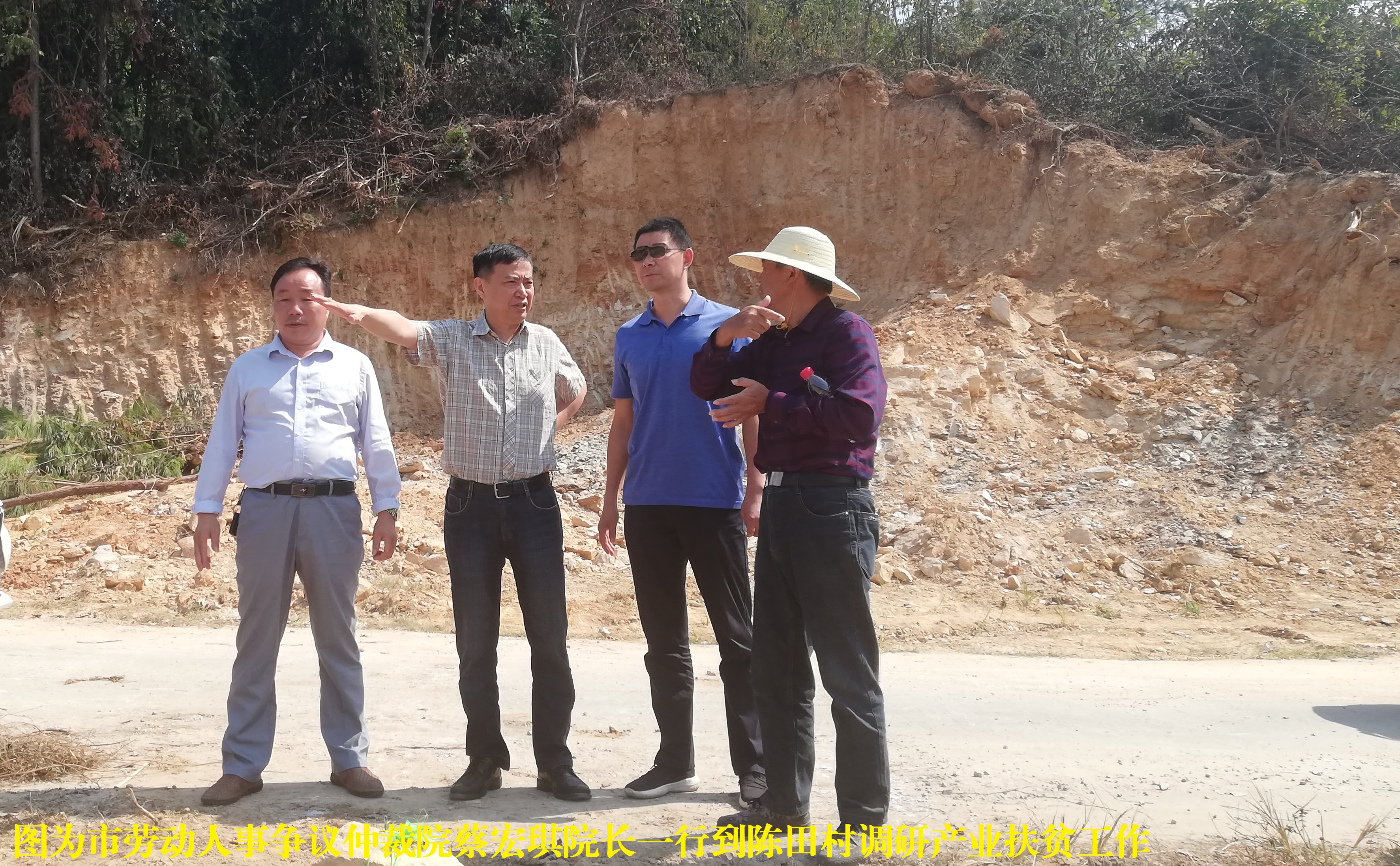 9月29日上午,市劳动人事争议仲裁院蔡宏琪院长一行到陈田村调研产业扶贫工作。蔡院长为驻村工作队赠送了两台办公电脑,听取了驻村工作队关于引进武汉陈田生态农业有限公司发展优质红心猕猴桃种植产业的汇报,现地察看了企业流转土地排水设施建设情况,并就扶贫产业发展方向、标准以及尽快带动农民脱贫致富等提出了明确要求。