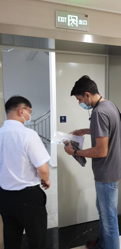 通过双方进行英语交流后,得知该友人在江夏区庙山的武汉外国语实验幼儿园上班,他在武汉工作了两年,目前想换份新工作但需要开具无犯罪证明的公证书。通过区市民之家人社部门、公安部门等相关工作人员一番协调后,经查验默罕默德的外籍人员健康绿码,考虑到其交流障碍,谭秋平陪同该国际友人一起他到市民之家四楼公证处咨询相关业务,并全程现场翻译。