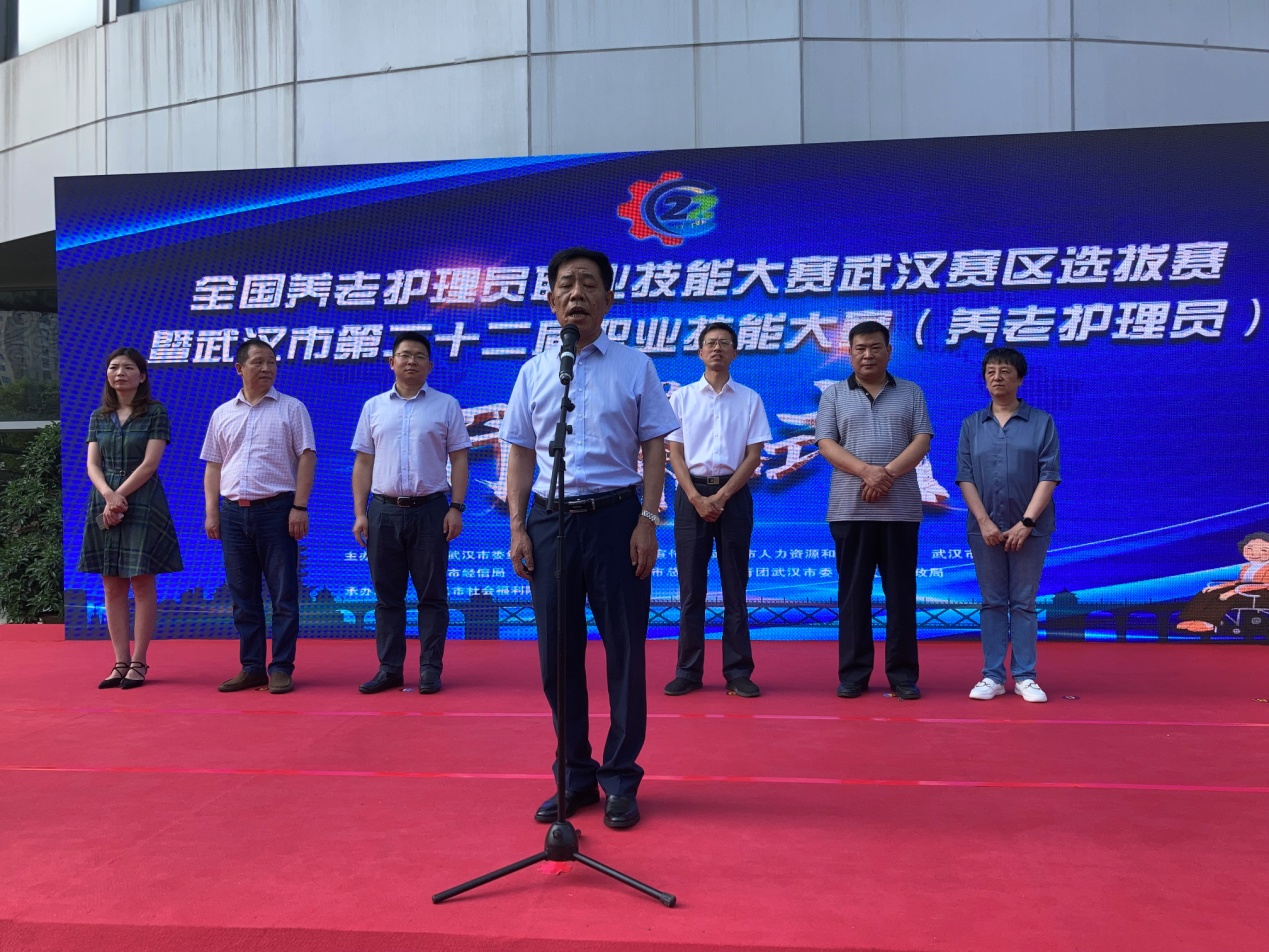 7月13日,由市委组织部、市委宣传部、市人社局、市科技局、市经信局、市财政局、市总工会、团市委八部门联合主办,武汉市民政局承办的武汉市第二十二届职业技能大赛养老护理员职业技能大赛开幕式成功举行。市人社局二级巡视员徐冬先出席开幕式,宣布比赛正式开始。