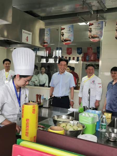 7月9日,武汉市第二十二届职业技能大赛暨2021年武汉市职业院校技能大赛中式烹调、西式面点等6个项目在湖北经济学院举行,我局二级巡视员徐冬先出席开幕式并视察第46届世界技能大赛烹饪(西餐)项目国家集训基地(市级集训基地),看望了国家集训队员李夏薇等。徐冬先巡视员要求集训基地精心组织、科学集训,勉励集训队员志存高远、奋力拼搏,为我市在第46届世界技能大赛取得优异成绩作出积极贡献。