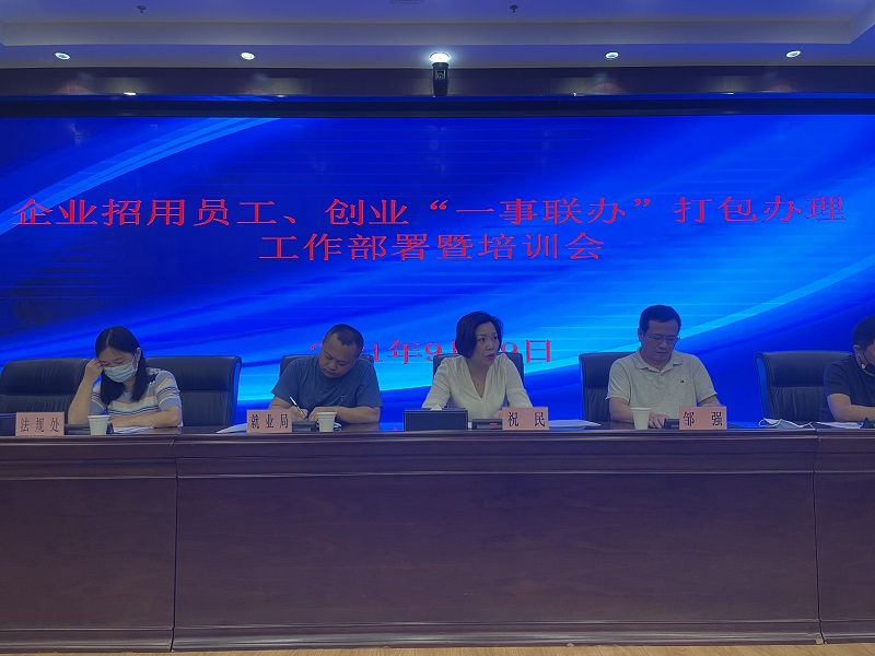 9月29日上午,企业招用员工、创业“一事联办”打包办理工作部署暨培训会在局机关12楼召开,市、区就业、人才、社保等相关单位参会,就业局、信息中心通报了工作方案并现场讲解了操作细则和分办程序。会上,局党组成员、副局长祝民同志对前期工作给予充分肯定,并对下一步工作提出要求:一是加强协作,确保一事联办“畅通办”;二是压实责任,推动一事联办“得实效”;三是纵深推进,实现一事联办“提质量”。