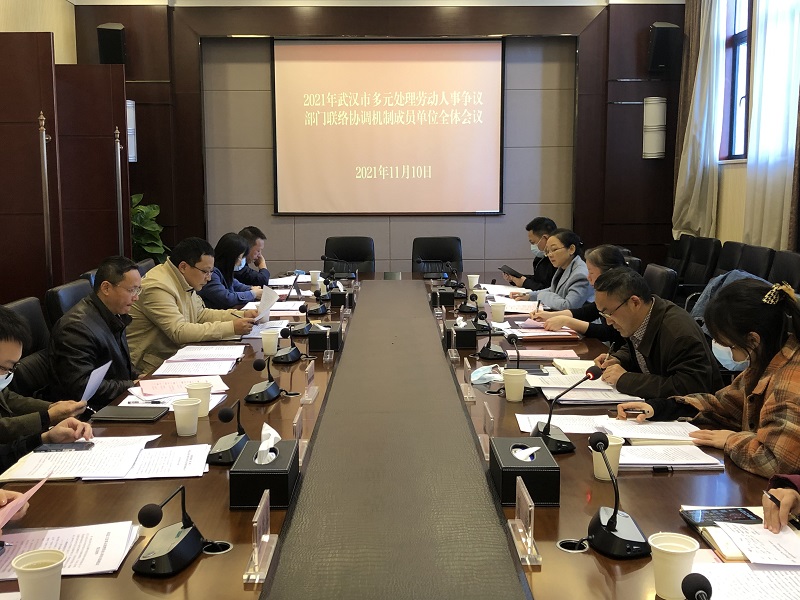 11月10日下午,我局组织召开2021年度武汉市多元处理劳动人事争议部门联络协调机制成员单位全体会议,各成员单位通报了参与劳动人事争议纠纷化解工作情况,共同研究分析当前争议处理工作形势,提出下步工作思路。市委政法委、市中院、市财政局、市司法局、市总工会、市工商联、武企联/武企协等成员单位参加会议。