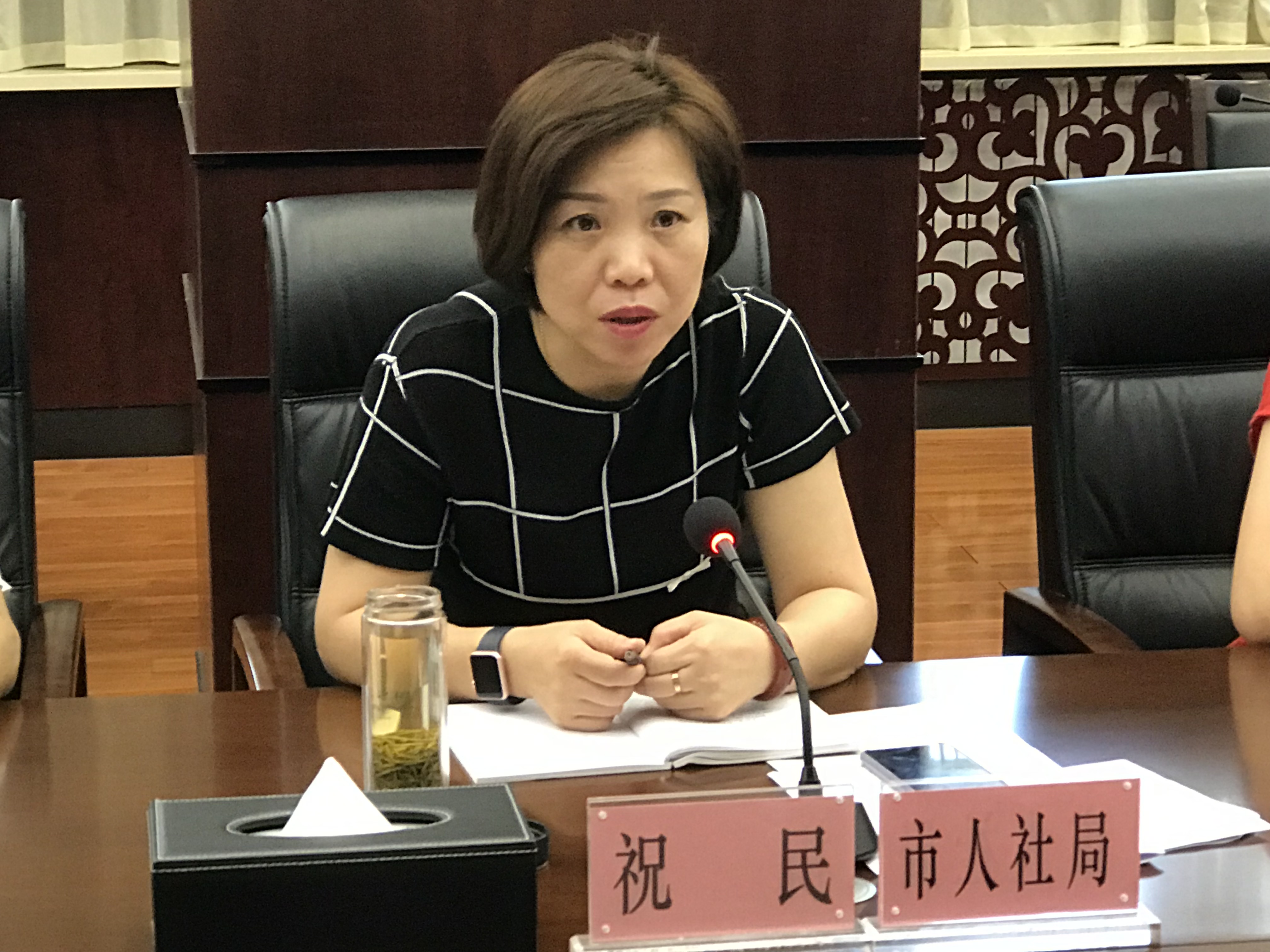 图为局党组成员、副局长祝民同志就全市治欠保支及根治欠薪夏季行动工作情况进行专题汇报