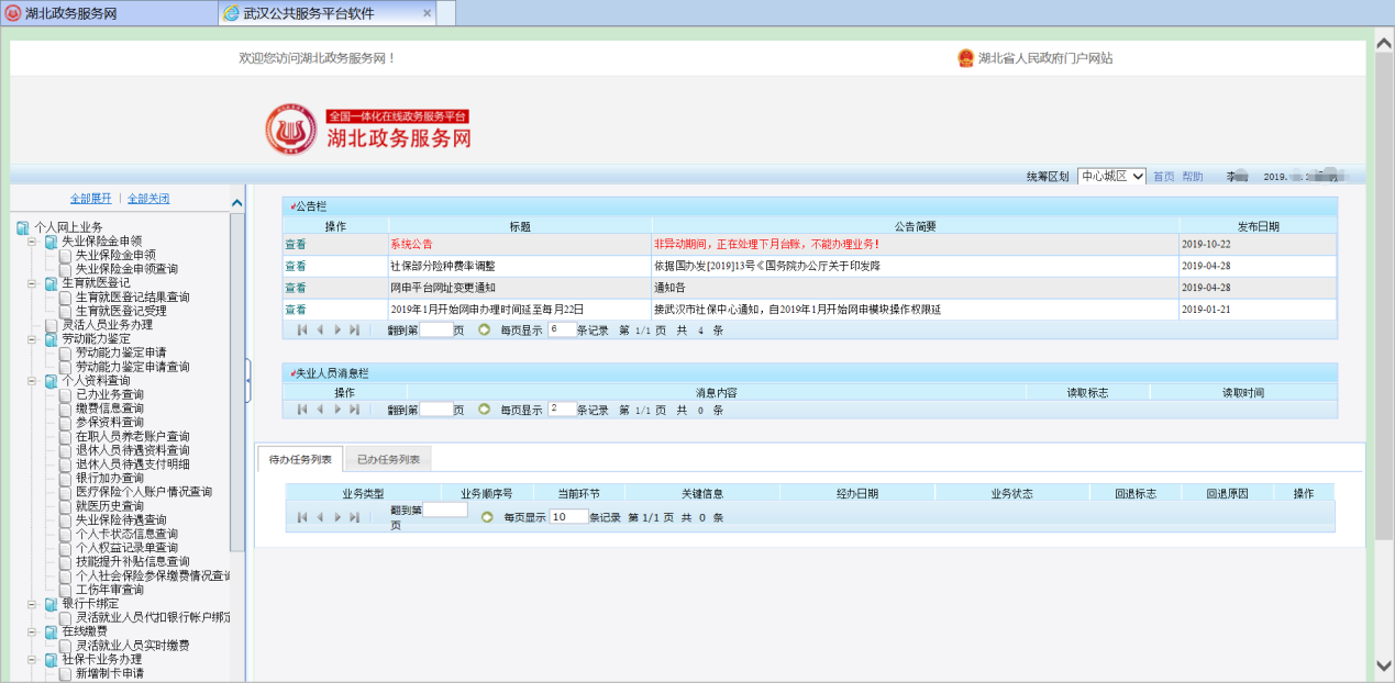 用户登录成功后,系统自动跳转进入社保网上办事界面: